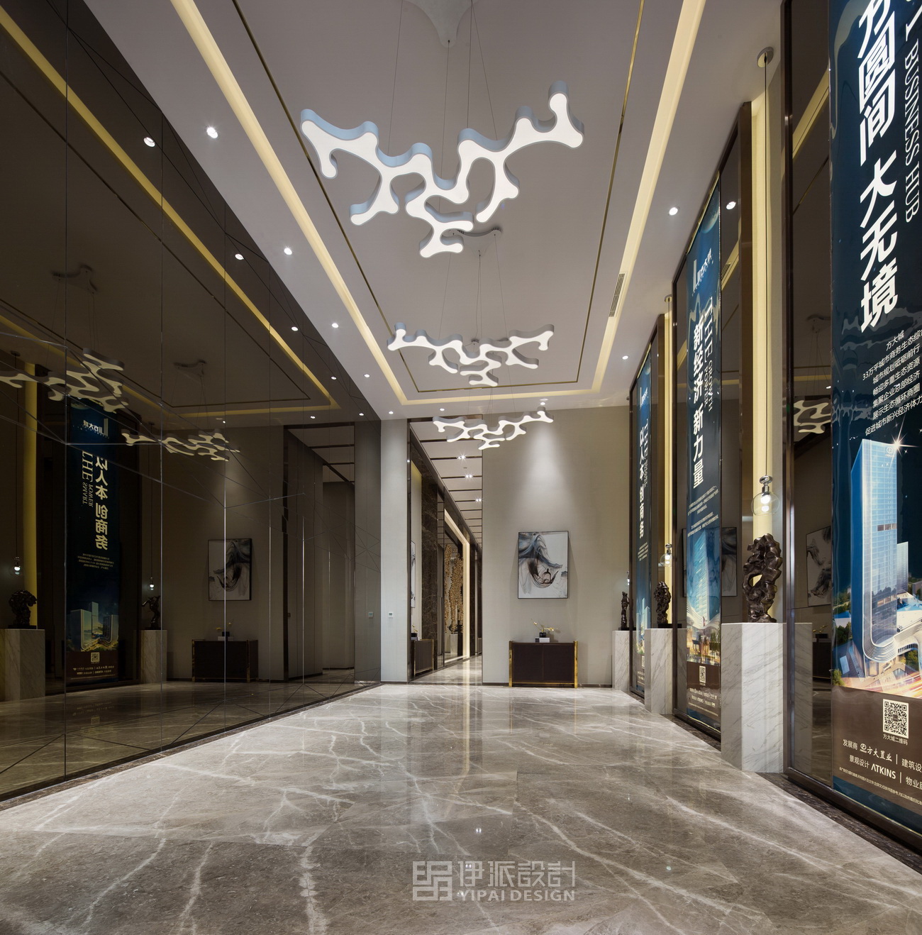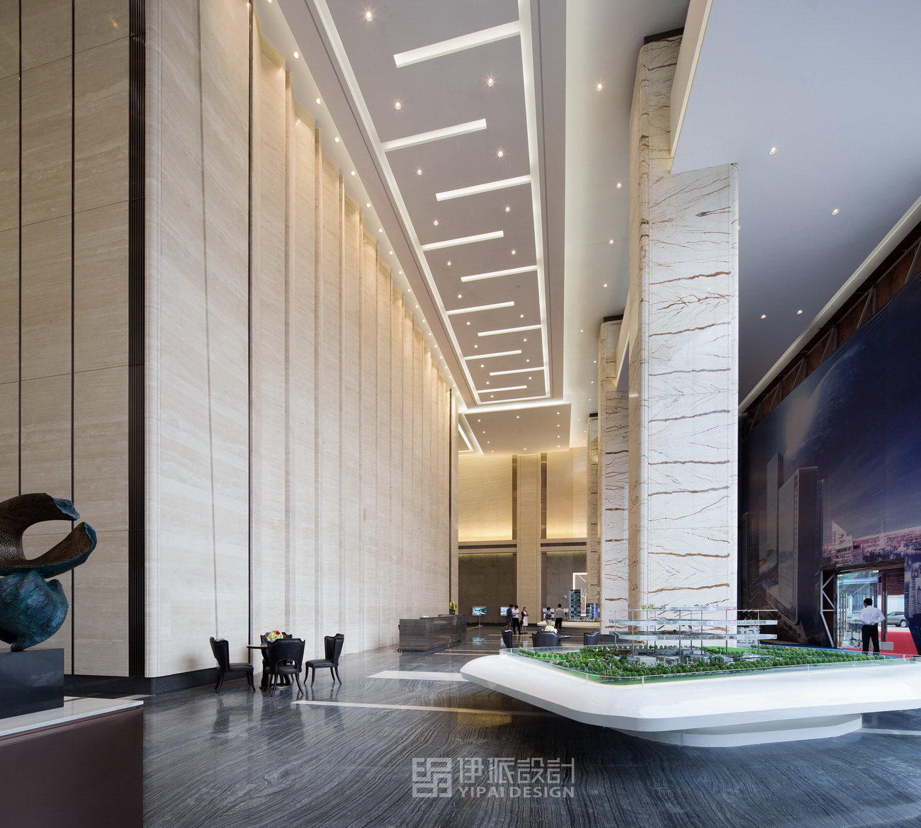南山華僑城片區(qū)的方大城樓盤,規(guī)劃面積44000平方米,售樓處面積2500平方米,定位于標(biāo)準(zhǔn)寫字樓,因此,售樓處設(shè)計(jì)手法皆是以呈現(xiàn)現(xiàn)代高效辦公大樓視覺效果為主。在層高優(yōu)勢(shì)的基礎(chǔ)上,通過空間韻律與層次,賦予空間更為現(xiàn)代化、高效化的視覺、辦公體驗(yàn)感。