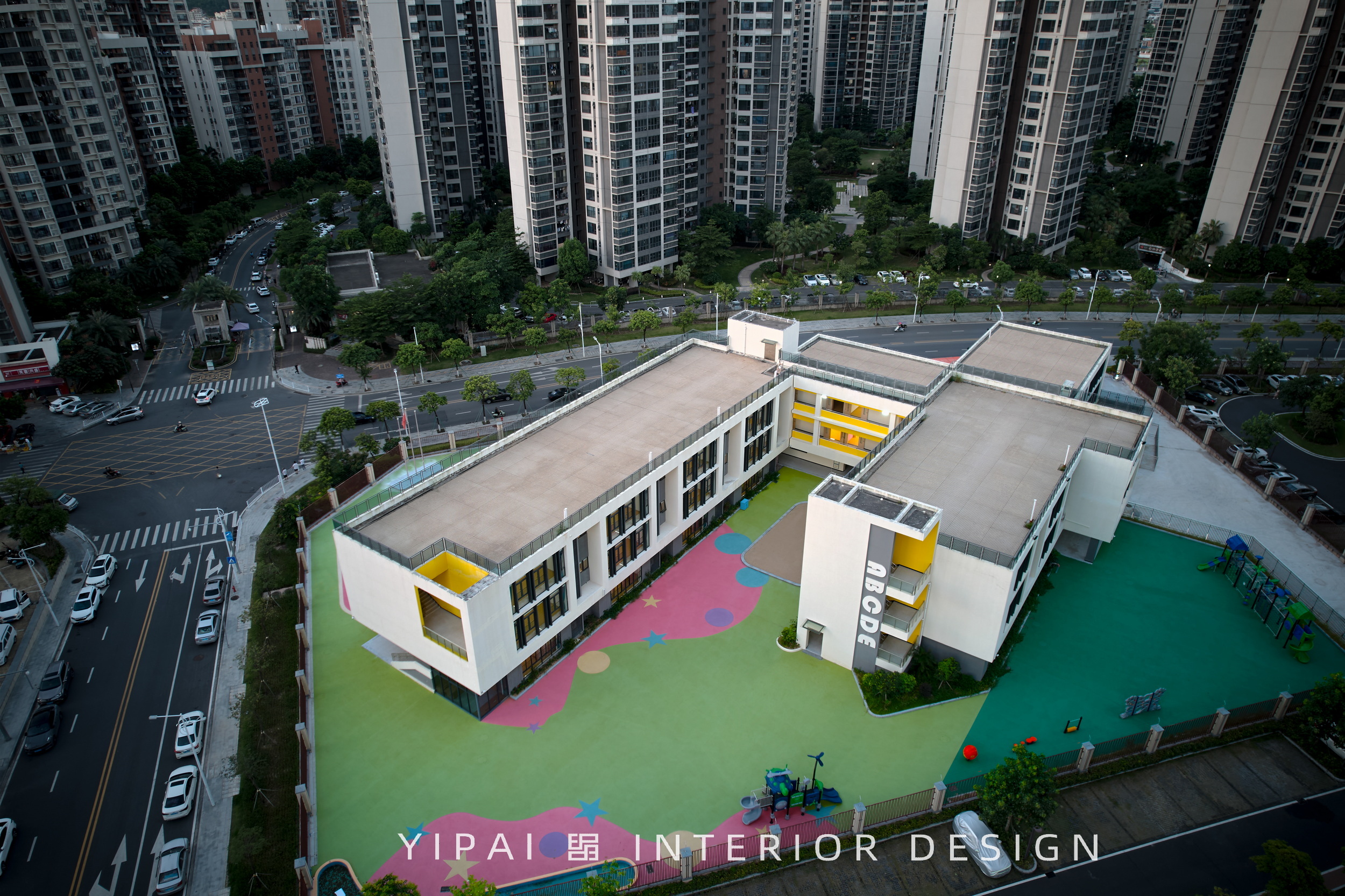 項(xiàng)目位于珠海斗門區(qū),廣東省珠海市斗門區(qū)新青五路南碧水岸西南側(cè),是自帶“貴族”氣息的幼兒園,園區(qū)室內(nèi)外的總面積超10000平方米;設(shè)計(jì)需滿足日照標(biāo)準(zhǔn)的幼兒園功能及室外活動場地,因此將幼兒活動單元及活動場地布置在建筑周圍,讓小朋友可以在天氣晴朗的時候,在陽光下恣意奔跑玩耍。